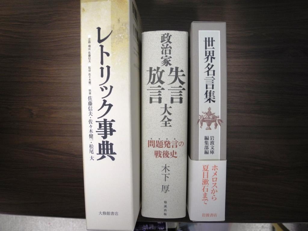 そのボリュームは筆者秘蔵の書籍「レトリック事典」や「岩波世界名言集」と並べても引けをとらず、一冊だけでも真っ直ぐ立つほどです。