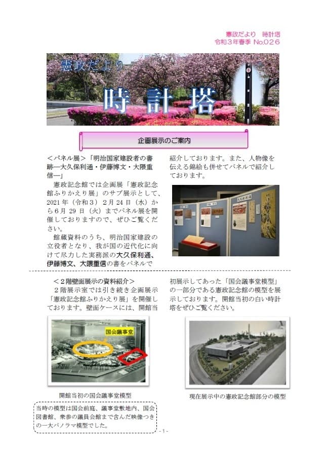 憲政記念館広報紙「憲政だより 時計塔」発行のお知らせ